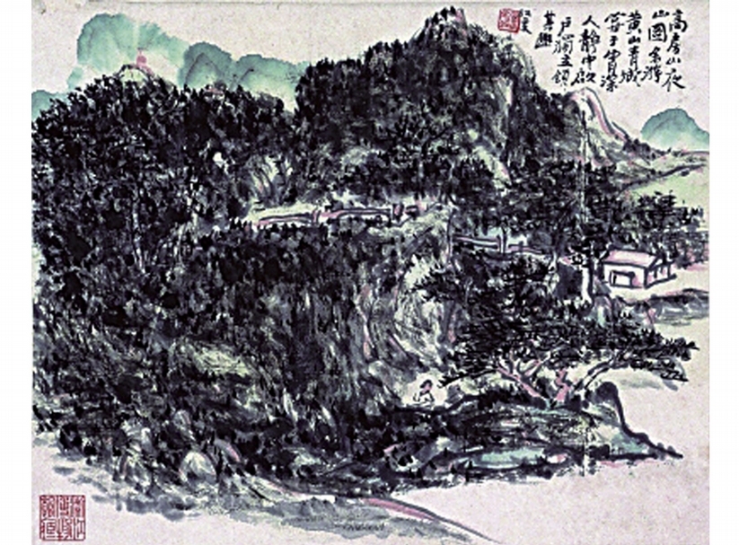 黃賓虹1954年作〈設色山水圖冊之八〉,22×26公分。