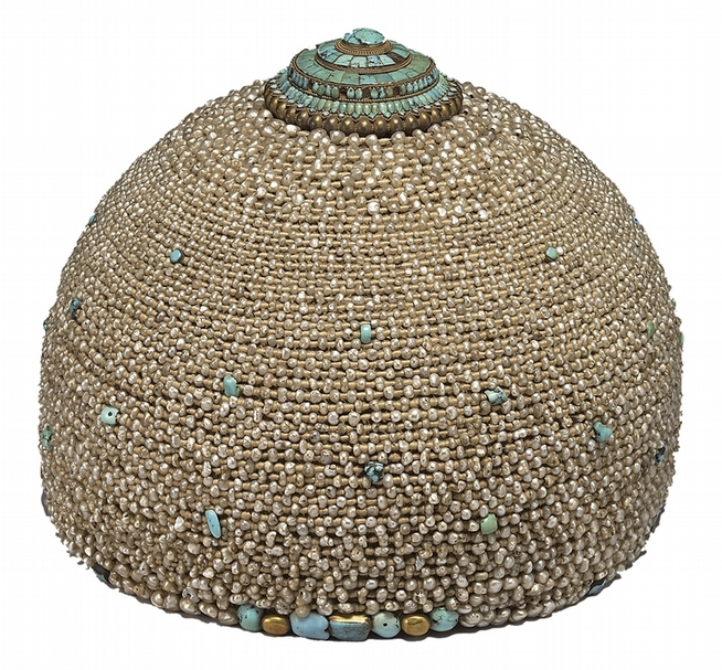 圖2 清〈嵌松石珍珠帽〉,國立故宮博物院藏。(國立故宮博物院藏提供)