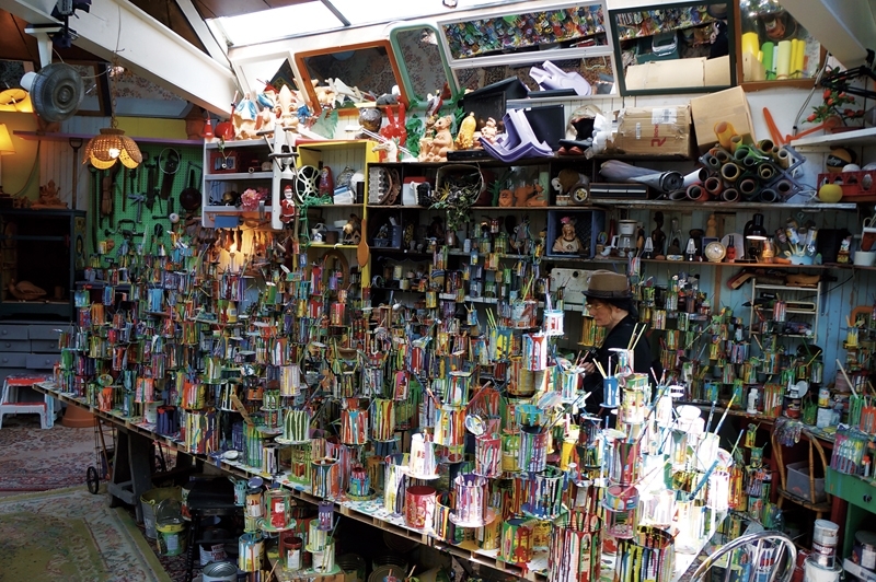 接著,穿過堆疊了大量滿溢著顏料的油漆筒、廉價雕塑、日常雜物與罐頭……這個讓感官超載的空間後,觀眾進到最後第四個空間,一座以臨時鷹架搭蓋的露台,此時觀眾才會發現剛才所看到的硬幣,原來是從露台上一座滑梯般的錢幣軌道掉入玻璃牆縫。面對加拿大館兩側的宏偉展館建築(英國、德國),BGL發現小巧的加拿大館與此相比反而像是一個服務處,這也使得他們產生「打造便利店般的空間」這樣的想法,而透過四個過渡空間,「Canadassimo」構成了一個具備藝術家與雜工、藝術與商業、博物館與工作間、私人與公共、完成與未完成之間的模糊地帶。