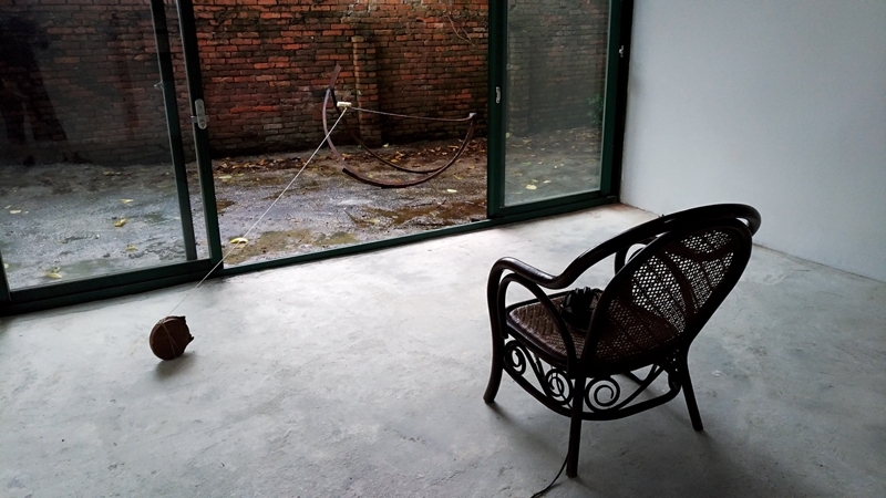 何采柔空間裝置作品《等它飄到我面前,我會想起》,偏向探討發生於日常時間及地點的尋常等待,透過展間設計、錄像及裝置物件/道具,營造「等待」的身體及心理狀態。藝術家選取了「3」的象徵,以最小單位的週而復始,開始-過程-結束,同時帶出了時間性與重複感。河床劇團、赫佐及里博的裝置、錄像及混合媒材作品,藉由光影、煙霧、影像,帶出極強的劇場渲染力,提供了不同於當代藝術的感官體驗;展區中意義與敘事斷裂的物件/道具,裝置/造景,真正呈現了當代藝術的混種體質。由廢棄屋舍構成的北區藝術聚落,自有不同於正規展場的特質,此區參展藝術家作品,大多適切地取用/融入的空間特性。李蕢至空間裝置作品《回收風景》,以洪水過後的淤泥、竄入空間的巨大拼組樹枝,及用於接水的鍋碗瓢盆,打造出虛構的人造空間與情節,反串了劇場的角色。郭月女的《層狀空間》,則又回到當代藝術的空間思考,以大量材料覆蓋空間,並藉由其化學特性在自然環境下的變化,放手讓材料自我展現與空間交互作用。澎葉生的聲音裝置《軌跡與碰撞》,以聲音為主體並擴展至身體感受的多聲道、多種聆聽方式,這些經過編排的聲音素材,在跨領域的維度重生,擁有獨立的生命。