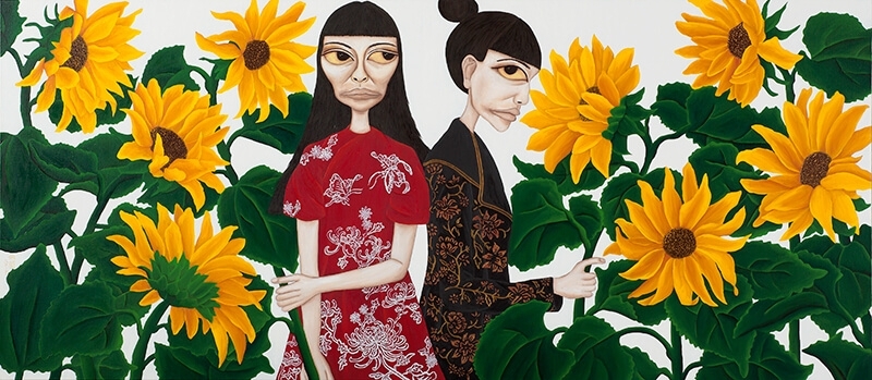 柳依蘭,太陽花會朝著太陽的方向開著,油畫,100cm X 230cm,2015。