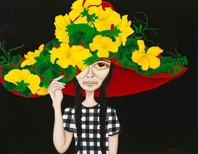 柳依蘭,希望的帽子,油畫,91×117cm,2015。