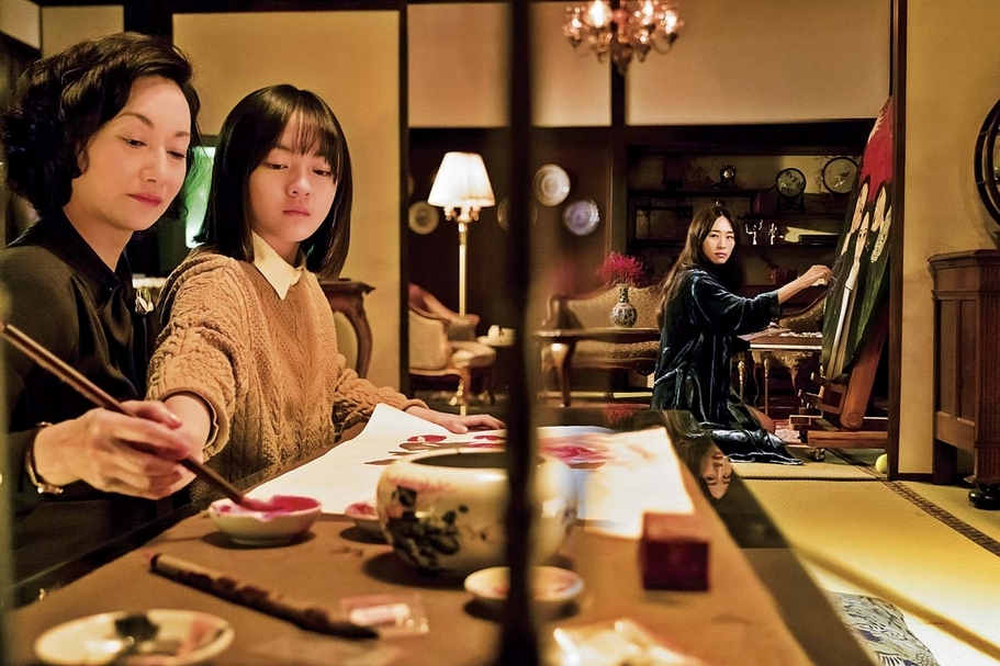 電影《血觀音》劇照,左起:惠英紅、文淇、吳可熙。(双喜電影提供)