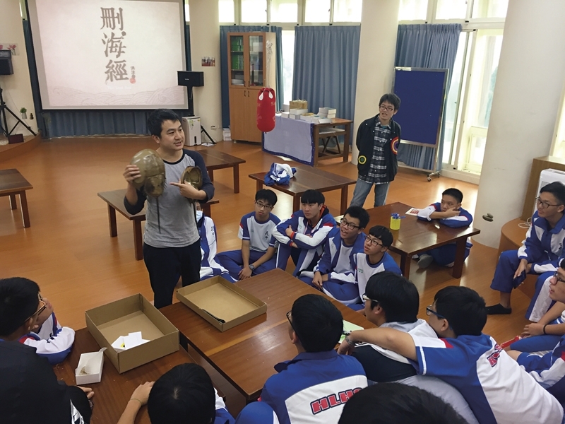 《刪海經》導演洪淳修與花蓮高中同學們討論紀錄片影像課程。(富邦文教基金會提供)