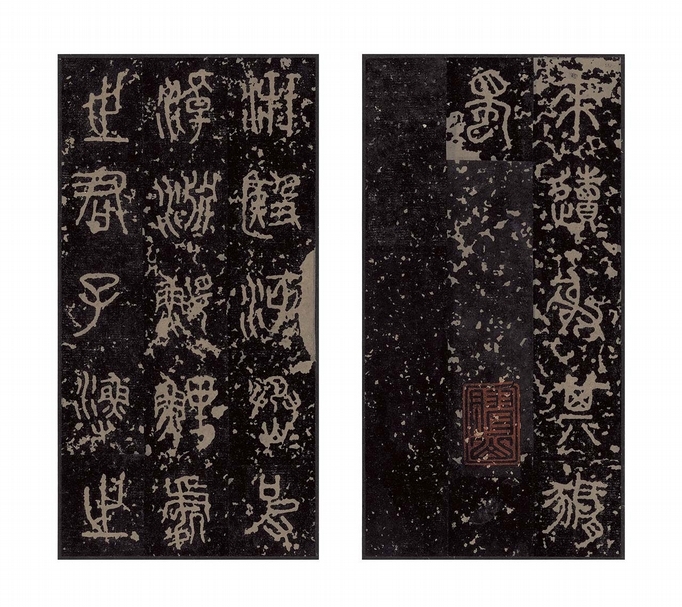 圖9  上海藝苑真賞社出版之《石鼓文》殘本印刷本,與藝苑真賞社秦氏收藏的舊拓《石鼓文》殘本相較,後多印了三枚安國「十鼓齋」的收藏印。(馬成名提供)