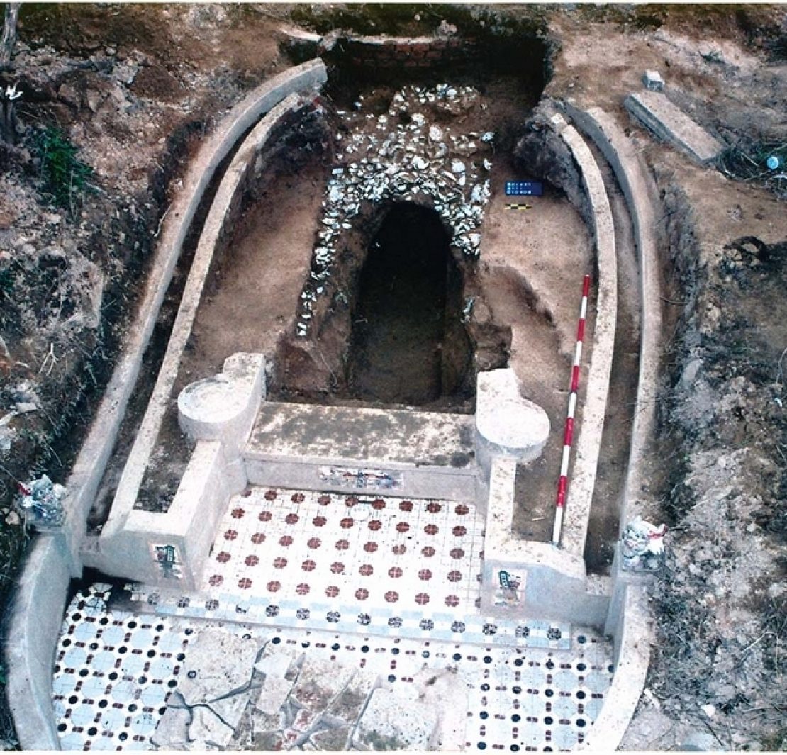 武信郎李存軒之墓碑雖因漢人遷葬習俗而敲毀,然而考古監看人員發現,墓壙內木棺之外墎以石灰澆漿包覆,並於石灰頂層舖覆了大量的瓷器破片(總計3859件),絕大部分都是青花瓷器及極少量粉彩瓷。(註1)更令人驚訝的是,墓葬中的瓷器經清大人類所師生清整修復後,竟未發現任何一件完整的物件,不論杯、盤、碗、匙,全部都是破片及殘件,顯然是刻意的儀式行為所致。喪葬儀式中刻意砸破飲食用陶瓷器皿,多被解釋為生者/死者關係斷裂的象徵,陽世/陰間、今生/來世的分別,象徵亡者已不再受饗人間飲食,亦已毋須掛念生前種種,今日的公墓墳頭上已經少見摔碗毀瓷的古老習俗。此外,毀瓷陪葬所留下的大量青花瓷器,豐富了我們對早期移民商貿動線的理解,也讓我們見證了清代竹塹史料中鮮少受到關注的常民物質文化之風采。