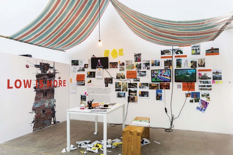 大規模拆遷和驅趕之後,泰康空間的微信平台發佈了題為「11.18大火難道只是建築問題」的推送。策展人蘇文祥笑談是在「蹭熱點話題」,當然這裡包含對突發事件的即興回應,但在其概念架構裡仍然有合乎邏輯的判斷:建築永遠不只是一個技術問題,也是人的問題。它關係到一個城市有機的那部分因素,行政化的干預的荒謬之處在於宏觀的單一性抹平了城市肌理的豐富感,徐騰在展覽現場展示了一段標題性話語:「Low is More」,巧妙地在句式上呈現了城市底層的真實性價值。