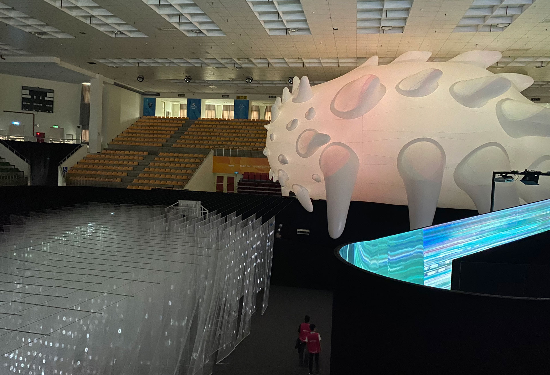 我觀察到第一個特徵是面向大眾,越來越多的當代藝術展覽把觀眾的互動、參與,視為創作當中重要的環節。它具體表現在大型的公仔、絢麗的燈光與可互動的裝置。這種面向公眾的藝術型態在藝術史上早有徵兆,班雅明在1936年就觀察到藝術從儀式價值走向展示價值,台灣過去也有許多地方的文創市集與博覽會是鎖定一般大眾,我還記得幾年前那種廉價的充氣公仔充斥在各大文創節日之中。但是最近的藝術活動的不同之處是,它吸引了更多過去可能只會在美術館出現的當代藝術家參與。即使ㄧ樣是充氣的公仔,整體的概念與視覺的呈現也複雜許多。我們很容易將這類的活動跟近年來藝術的網紅化混淆,確實越多越多美術感與策展人考慮網路上的聲量,但是台灣的狀況是,這些作品比起網紅展更為精緻,並不像是網紅展那樣只訴求網路上的美照,不管現場如何粗糙都沒有關係。相對的,它的製作仍然接近於藝術(fine art)創作,因此它引起大眾的反應,終究不如卡漫公仔或是Line貼圖的展覽來的那麼熱烈,很多時候仍然是一個限定在文青圈當中的活動。