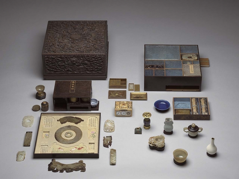 圖2 清乾隆〈紫檀蟠龍方盒百什件〉,國立故宮博物院藏。圖∣國立故宮博物院