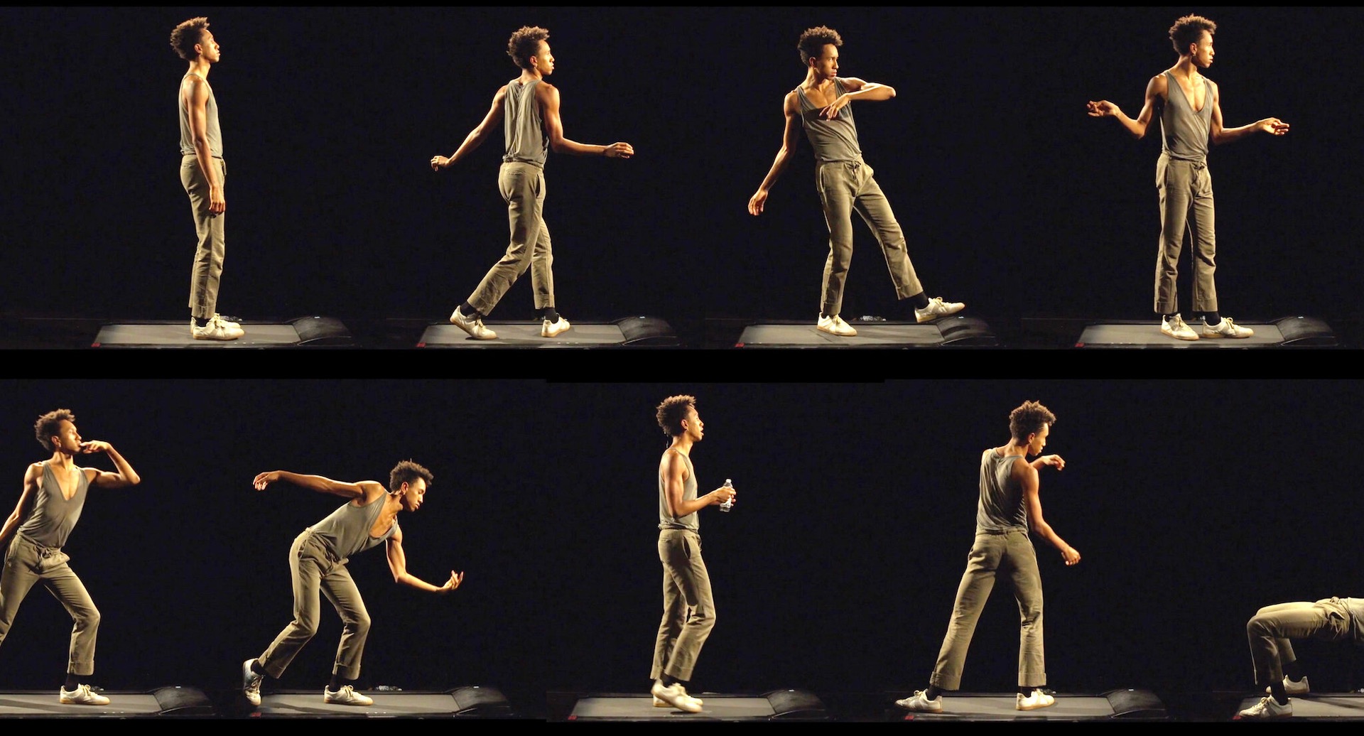 在這些案例裡,當藝術家運用數位工具時,思考的不是如何把現場表演轉譯或轉播為動態影像,而是進一步處理數位平台與媒介,在視覺傳播語境及過程中所具有的劇場性。譬如影像裡的格林伯格被持續往後的輸送帶推著向前走,在物理尺度上卻沒有真正前進。重複原地踏步的身體意象便縫合了時延表演(durational performance)與直播事件所表現的圓形與線性時間觀的間隙;又或者,視訊會議軟體裡讓眾人貌似「在一起」的多格視窗團塊,實則呈現了虛擬共在(virtual co-presence)於共時及在場的不可能。而當視訊鏡頭切割了表演者的身體與空間環境的局部,影像的製造與編排如何轉化為一場編舞的過程等。