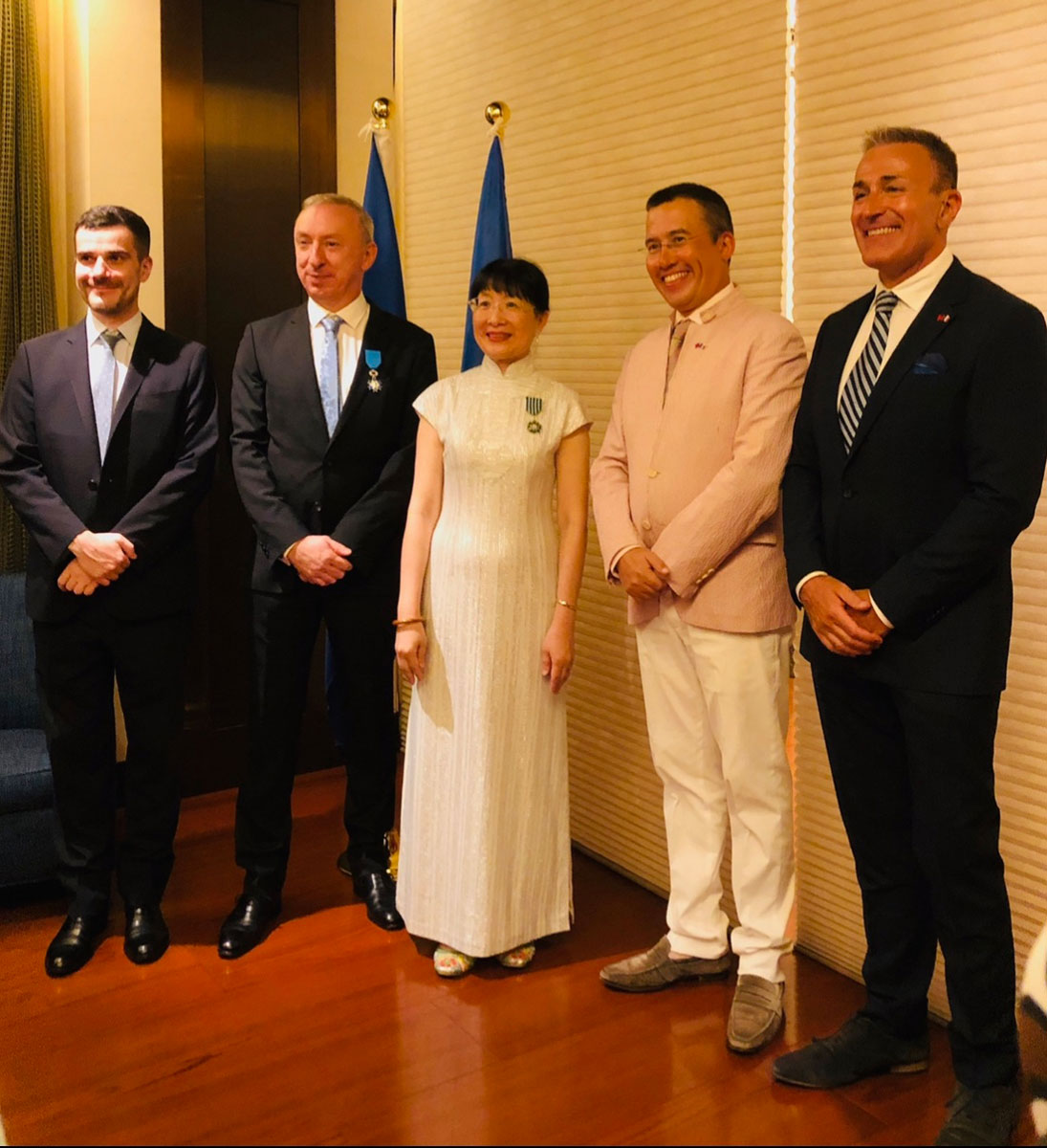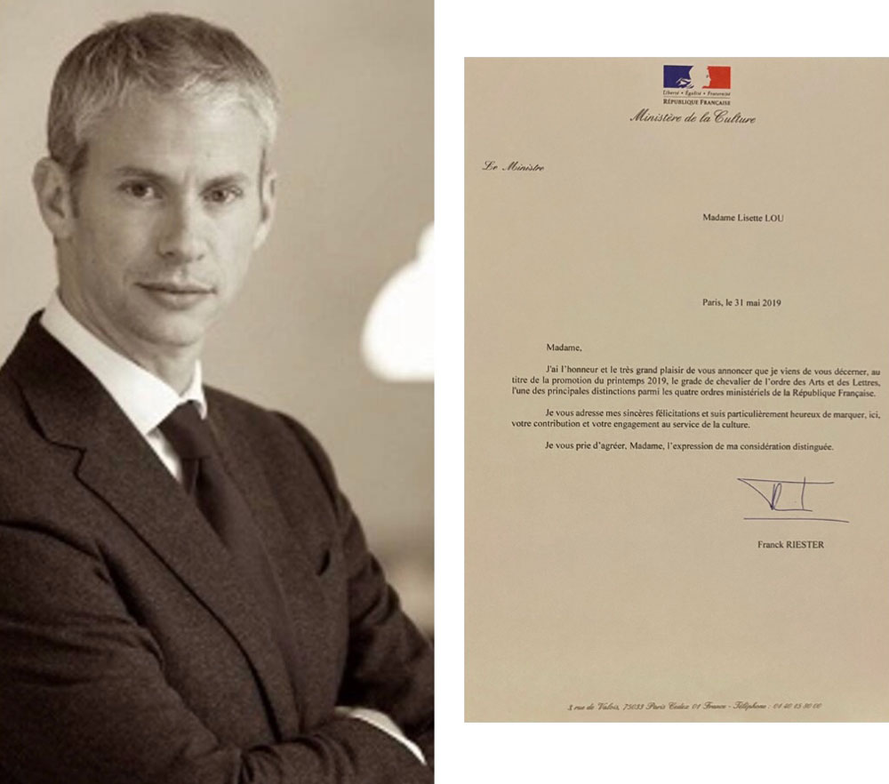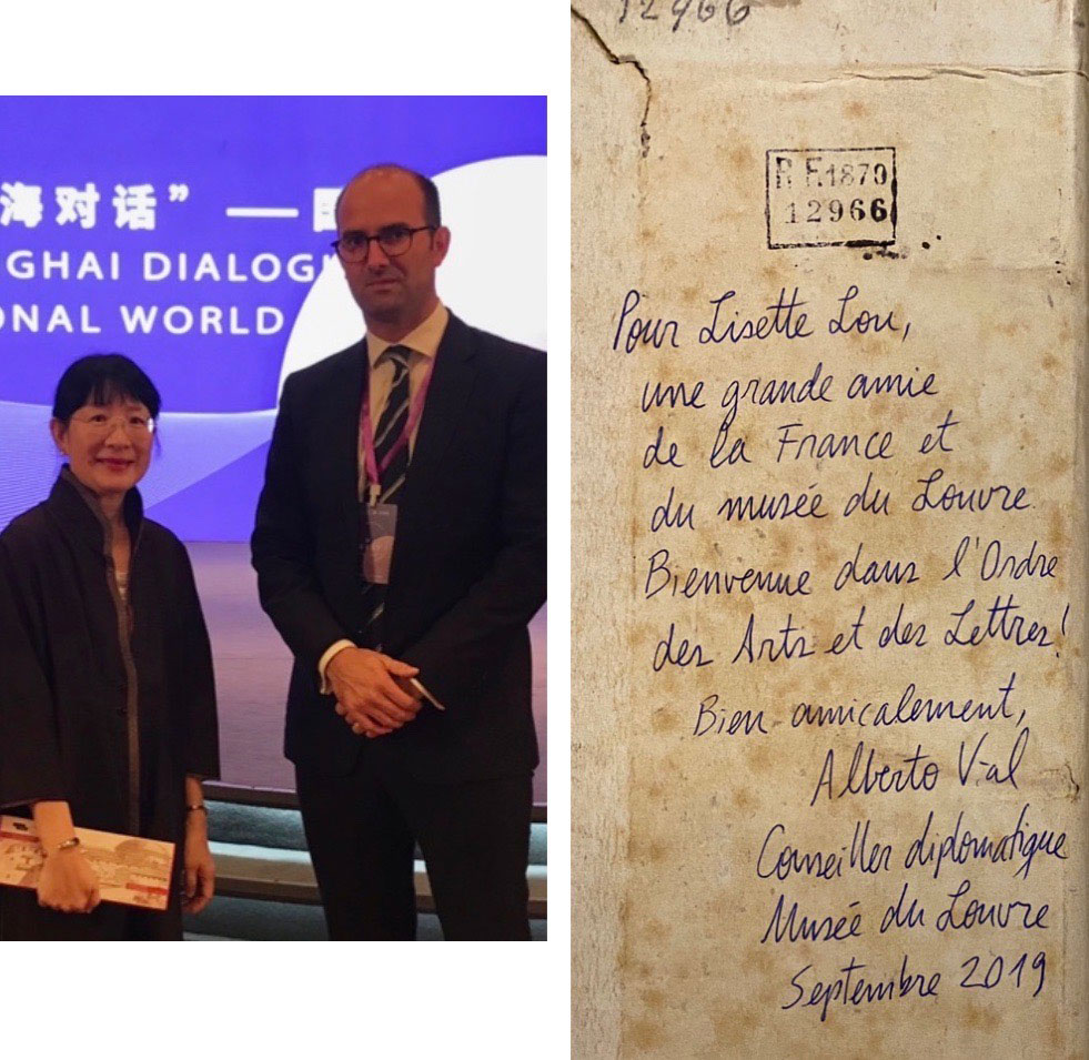 2019年,筆者收到,法國在臺協會前主任紀博偉轉交的法國文化部部長Franck Riester的兩封正式信函,告知喜訊。於2016年亦榮獲「藝術與文學騎士勳章」殊榮的法國羅浮宮博物館(Musée du Louvre )館長室外交事務顧問Alberto Vial,以及奧塞博物館(Musée d’Orsay)館長室前國際交流顧問Olivier Simmat,皆相繼致贈筆者出版品致賀。羅浮宮的顧問並親筆書寫:「 致法國及羅浮宮的的重要友人,歡迎加入藝術與文學騎士家族」。筆者整理此文,除了向臺灣文化界的前輩們致敬,亦感念自1993年起,臺灣和法國博物館正式館際交流起,法國博物館館界的同行們的支持和鼓勵,此情誼彌足珍貴,將永藏於心。