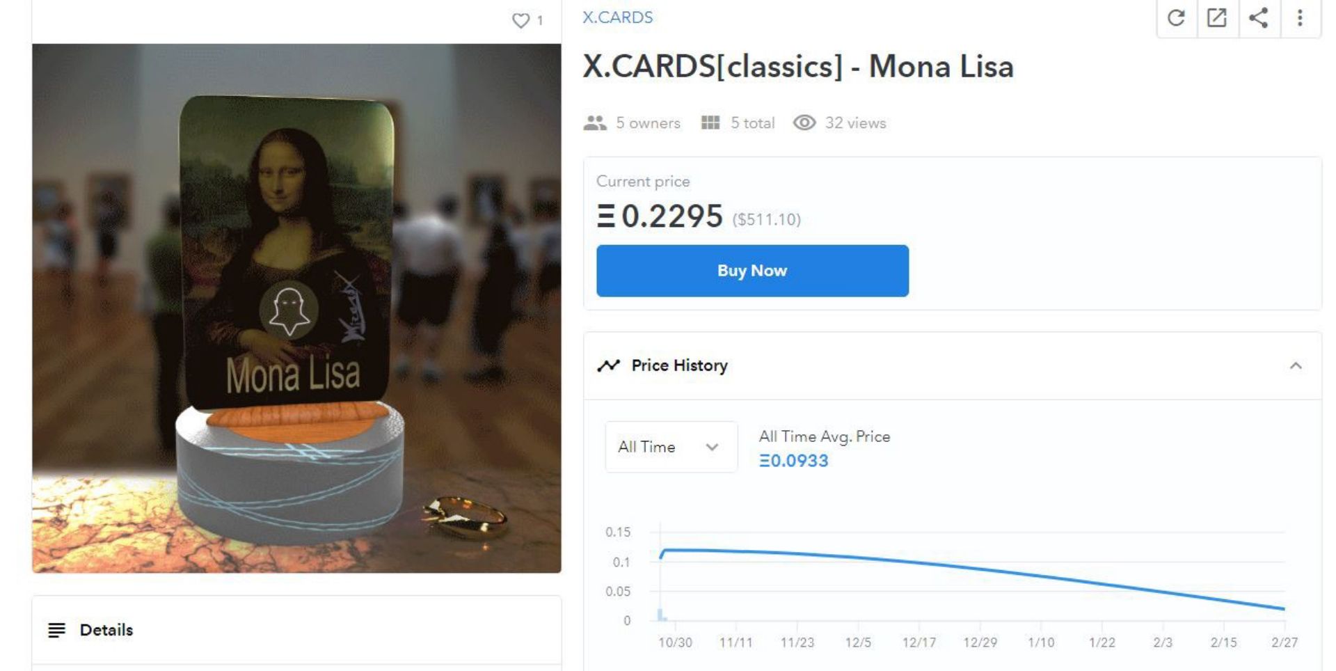 同理,如果今天你買到一個蒙娜麗莎NFT的二次創作作品(現在全世界數位藝術家的熱門創作題材之一),你買到的也是該數位創作本身的數位資產冠名權。