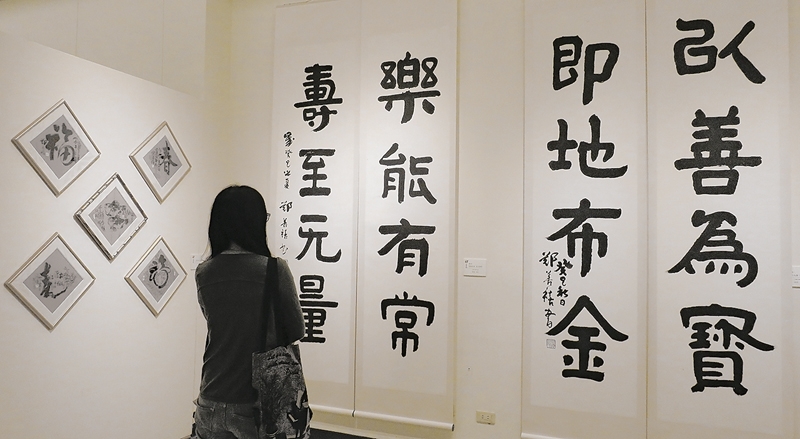 鄭善禧書作樸實大氣,隸書對聯為240×60公分×2。攝影╱藍玉琦。
