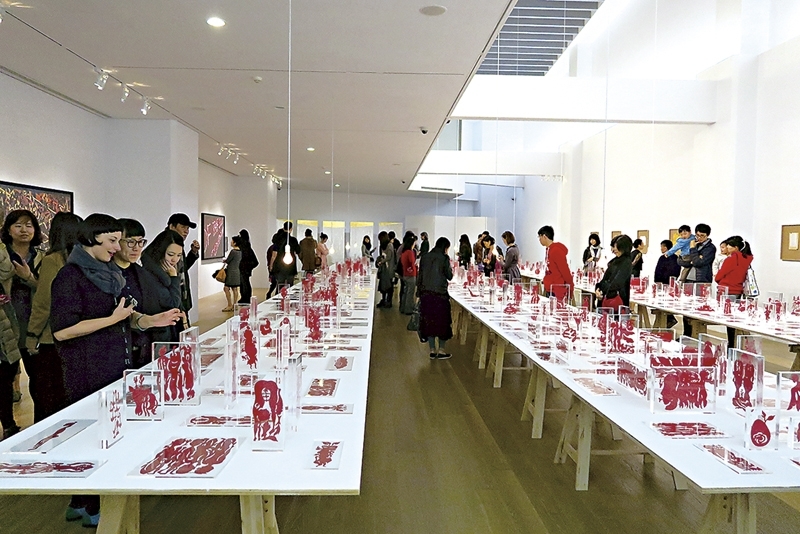 《一千零一夜》將上千件剪紙作品錯落有致地擺設在三張長桌上。