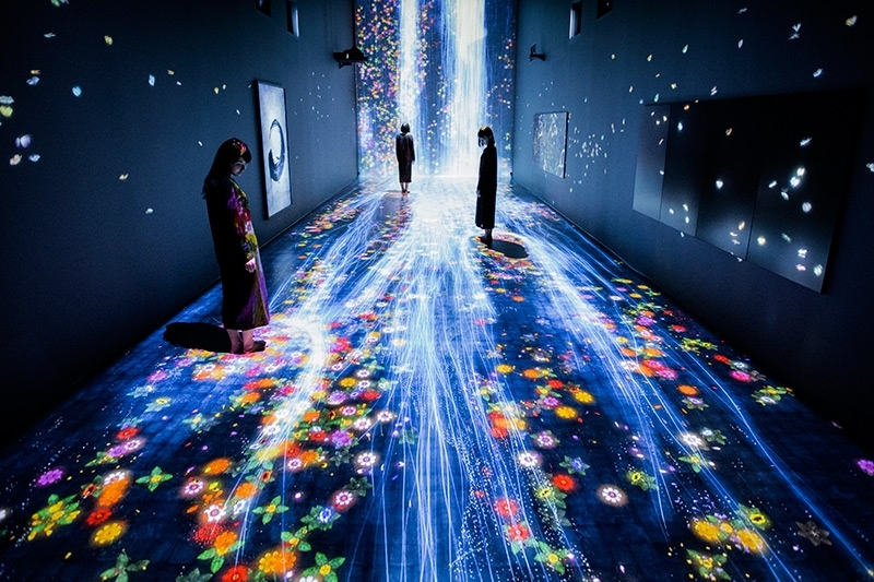 成立於2001年的teamLab,是由畢業於東京大學數學工程和物理情報學部的豬子壽之(Toshiyuki Inoko)所成立,這個跨領域團隊涵括工程師、數學家、建築師、CG動畫師、網頁設計師、平面設計師到藝術家。他們除了創造新媒體藝術作品於畫廊、雙年展到美術館展出,也跨足產品設計,例如與無印良品合作,推出幫助睡眠的應用程式MUJI to Sleep;再到娛樂裝置應用,如2013年曾與電視台合作,於日本男子偶像團體「嵐」(arashi)的演唱會中,加入了即時聲音遊戲的現場活動,直播的過程中觀眾能透過電視畫面上顯示的節奏點點擊手機,便能即時參與電視的音樂遊戲,創造了137萬人共同遊戲的瞬間。這群來自不同領域專家組成的跨領域團隊,作品總是能跳脫既定傳統的框架,創造集合科技、藝術與科學為一體的創新作品。