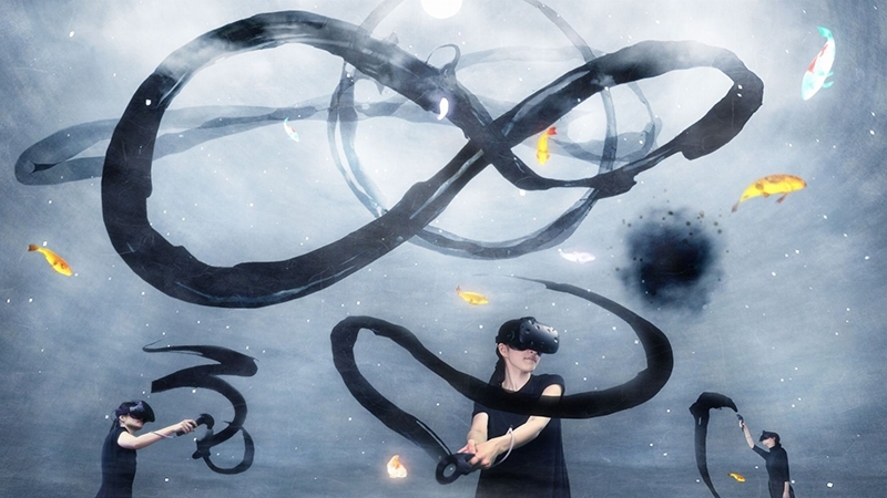 《空書相、無限相》結合擴增實境,打造虛擬書法空間。圖|teamLab