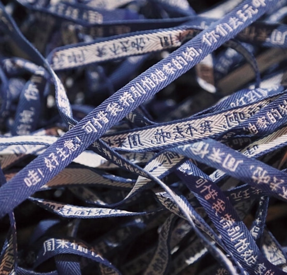 與陳天灼不同的是,楊沛鏗的大多數作品都描述了一種個人與世界之間的步調與封閉的慣性,對於人與人關係的不確定性成為他丈量自我與世界關係的主題。唐狄鑫則用挑釁的、極端的、對抗日常的方式類比著自我與環境的矛盾和不適。何意達則善於思考作品是如何從材料、空間層面,以及不同的環境和閱讀下產生,並對建築、結構、空間、材料及作品與物件的相互關係充滿了興趣。用日常俯拾即是的材料創造具有雕塑感的作品,不但反思了材料與語境的關係,也質疑了藝術品的價值。林科顯然是一位基於二進位語言的「演員」,他的創作和思維方式也遵循著二進位的邏輯,那件囈語似的聲音裝置《吉澀斯的故事》,用朗誦的語調煞有介事地模仿著一種標誌性的聲音表演。胡慶泰與林科的相似之處是同樣的尷尬、幽默、敏感─推辭朋友聚會的藉口被繡在長至幾千米的滌綸帶上,這些極具消費誘惑顏色的商品標籤(材質通常為滌綸帶)成為人與人之間微妙距離的尷尬見證。