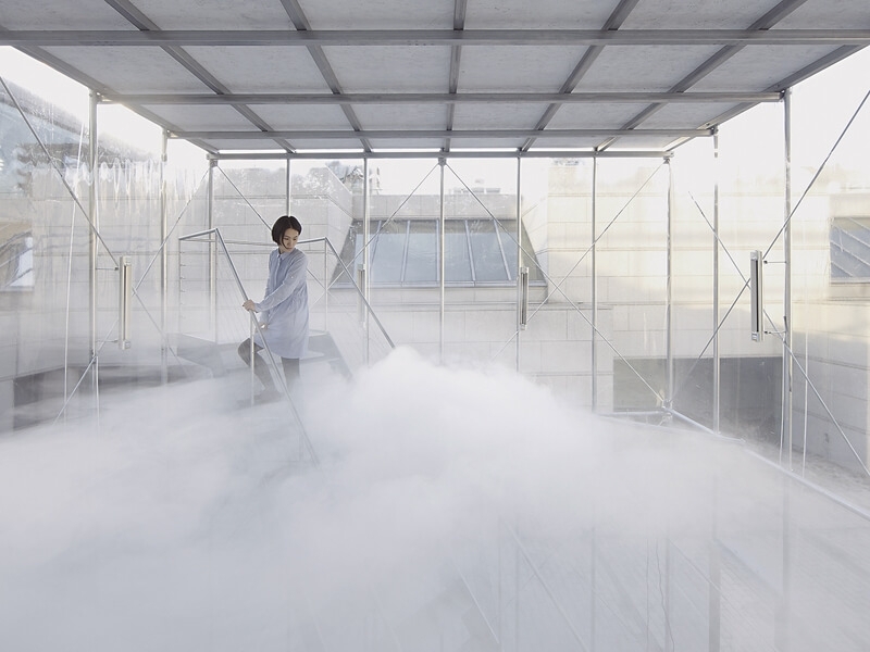 究竟我們要如何討論瞬息萬變的環境?是用凝固的時間還是動態的變遷?展覽以日本建築師兼藝術家近藤哲雄(Tetsuo Kondo)著名的藝術裝置《雲景》(Cloudscapes)打響展覽主題。藝術家在一個兩層樓高的透明立方空間中以機器定期製造雲霧,並在中心擺放鐵架樓梯,使得觀者可以隨著樓梯的高度體驗穿越雲層並有漫步雲端的錯覺。人工雲層濃度與厚度的變化,製造出時而煙消雲散,時而霧裡看花的景象 ;「這兒,有一朵真正的雲」,人為、人造的自然很明確地反映出當代社會的問題:人類自詡為上帝一般,企圖征服自然,滿足自我,而施展幻術的想像。在這當下,我們身處烏托邦的想像之中,站在雲朵之上,巡視自己的小領域,然後呢?