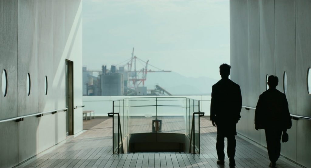 家福與美沙紀來到廣島市環境局中工廠散心——這一個紀念二戰原子彈轟炸五十週年的垃圾焚化廠,其設計者日本建築師谷口吉生用以連結其恩師、日本戰後最重要的建築師丹下健三所設計的和平紀念公園及幾座建築,一路通往原爆遺址,形成一道「和平軸線」。丹下健三在日本建築史上的重要性不言而喻;曾以改建美軍營區成為日本戰後復興國力的奧運建築國立代代木競技場而聞名於世,同時也為家鄉廣島規劃和平紀念公園園區安撫戰爭亡魂。其巨匠格局,全因慎重處理家國與民族劫後餘生的創傷治療。而谷口吉生與晚近的濱口竜介,或多或少都繼承了銘記傷痕的行動從而作出具體的記憶提示。在劇情片中植入歷史地景不會是全然的平白無故;透過美沙紀在這創傷地景為家福導覽一舉,首次開口道出自己離開北海道的原因,也是濱口竜介藉由人物之口,埋下亞洲創傷的線索,並如同谷口吉生繼承丹下健三般,提供了亞洲舞台來繼承前輩們的世界關懷。