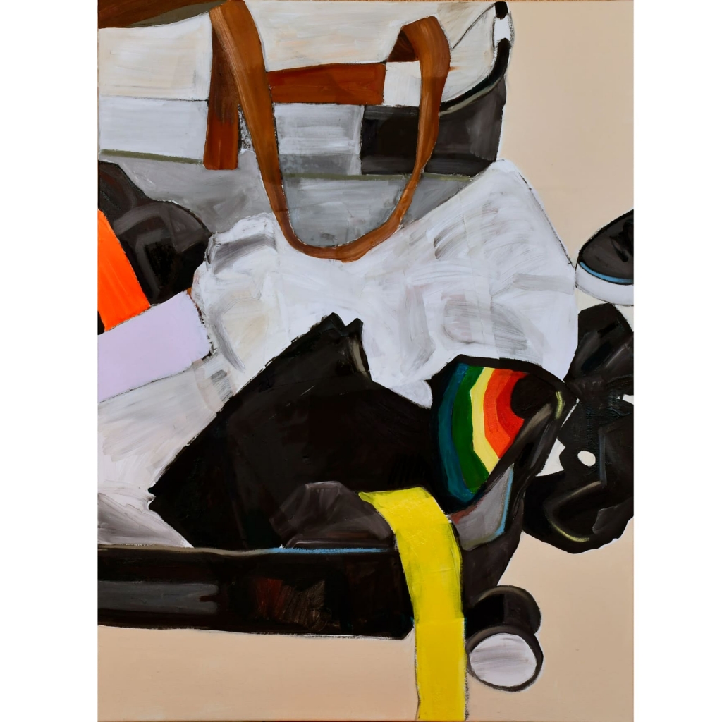 有時郭彥甫會更進一步拉近物件的距離、簡化輪廓,讓對象佔滿整個畫面,使作品更像是色塊與線條組合的抽象畫,例如《彩色A》、《白色C》等,「行李開箱」的重點已不在於對內容物的寫生,而是作為創作情感的觸媒,啟發他對美學形式的探索。
