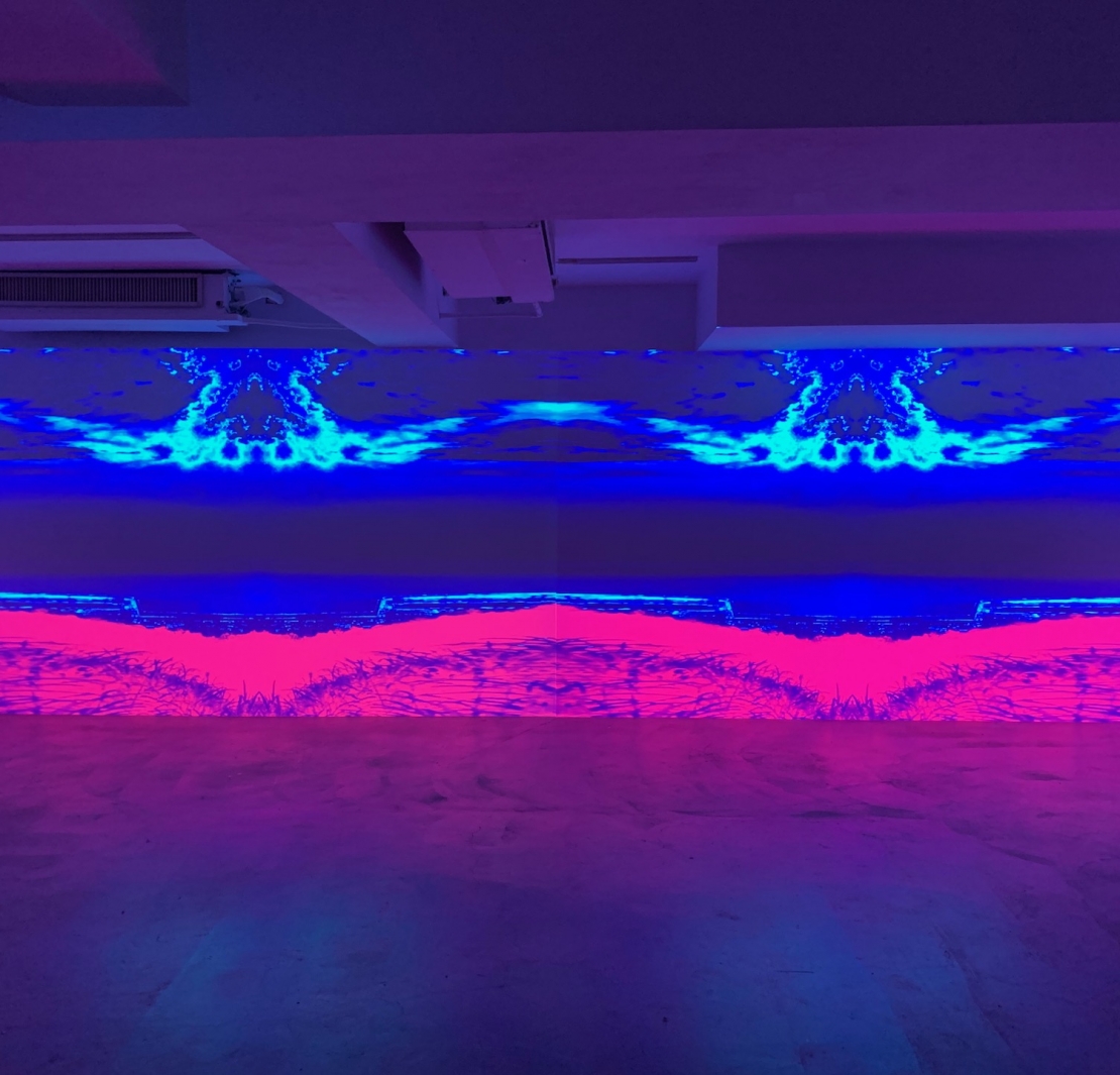 在處理人類與數位科技的依存時,黃裕雄相對更願意去人類中心地給予電腦更大的表述自由,而非僅將其視為滿足我們的需求的輔助工具。於是在展間中,黃裕雄刻意讓電腦與傳輸線路都清楚地可被辨識,強化人類與電腦的這層關係。唯有在《我跟你說一個故事》中,將黃裕雄的日記重新進行文字編碼的電腦被刻意隱藏起來,直指各種訊息、語言與敘事背後編造角色的不可見。他坦言,這樣的依存並非中性,確實是個充滿危機的問號。當我們在展場中走過前述幾件協力「共創」作品後,最後一件《迷霧之島》卻急轉直下地大顯突兀的鮮豔、高對比的負像與粉紅光彩,好比藝術家梁廷毓「斷頭河計劃的」的濾鏡風格。在黃裕雄提供給電腦分析運算的觀音山出遊風景照中,更於樹上莫名浮現出骷顱般人臉形狀,不禁令人聯想霍爾班(Holbein Hans the Younger)《法國大使》(The Ambassadors)中的謎之骷顱歪像。而這一切皆是出自電腦之手,為原平凡的山海之景抹上詭譎的異色,當頭棒喝般地敲響喪鐘。「編碼與解碼」也因此完整地提供了一個展覽敘事,即觀者從一開始的《我跟你說一個故事》見證機器學習文字編碼的過程,走過《失語症》、《城市漂流》中人類主觀想像下的合體,再至《失效的感知》中的主體性讓渡,最後演進為《迷霧之島》中失控的恐懼。