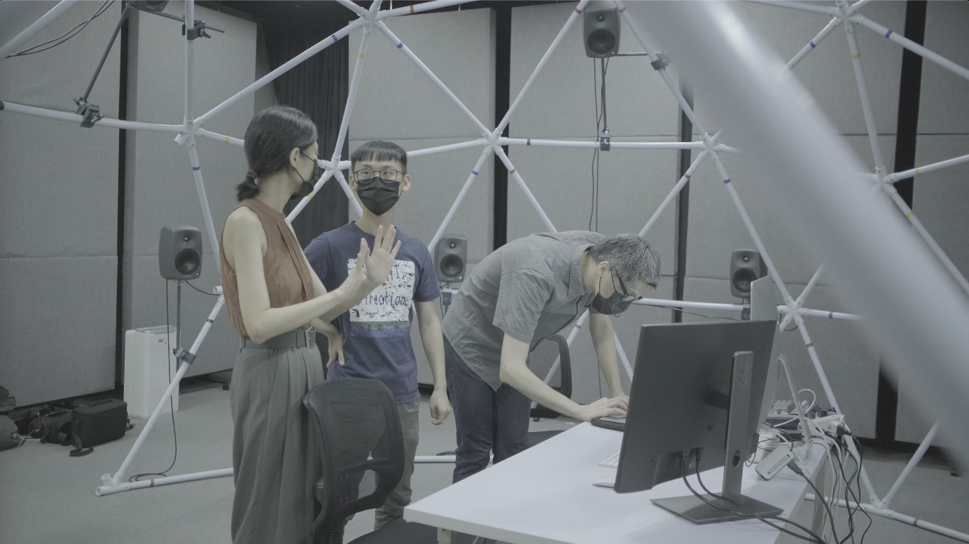 黃意芝進一步分析,國內過去對音樂領域的養成,尤其限縮在一條龍式的的科班訓練,專精之餘卻也可惜較為狹隘,缺乏與其他領域互動的機會。於是,臺灣聲響實驗室積極推動國內大專院校開創跨領域學程,讓校內譬如藝術學院與理工學院的師生,得有對接互動的管道。近年來,也確實有越來越多跨學院的合作交流,本屆「C-LAB聲響藝術節」的「校際單元」亦從上屆的一所院校擴充至四所共五檔節目。黃意芝介紹,實驗室在其中扮演著支持與推廣高教創作的角色,提供立體聲場空間與相關技術,協助院校帶領學生實踐理論所學。她強調,唯有在學生時期趁早開啟這般科技技術與藝術人文間的對話,方能指引這座科技島上的優秀資工人才,理解未來並不是只有唯一一條就業管道,而可以積極開發自身興趣;同時培養年輕藝術家拓展對創作可能性之豐富想像。