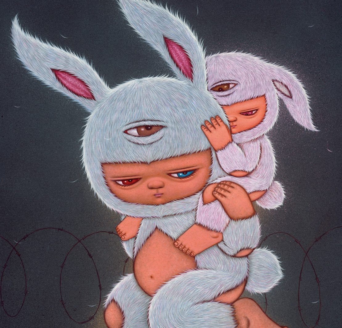 秉持街頭精神的泰國藝術家Alex Face,本名為Patcharapon Tangruen,最極具標誌性的三眼兔Mardi,在台灣掀起一陣熱潮。日前於雷相畫廊展出「隱形邊界」個展。「隱形邊界 INVISIBLE BORDER」是Alex Face最新具現化成一系列的畫作,作品以邊疆議題為主軸;探討邊疆造成的動盪分裂與分離枷鎖,從地理上到心靈層面的邊界。此系列延續著藝術家始終為現今與未來孩子們在動盪國際情勢下對家園、迷失與調整種種的社會擔憂,其作品取材來自他從小鎮到新興城市,於街頭壁畫創作時所觀察、聊過天的人事物。
