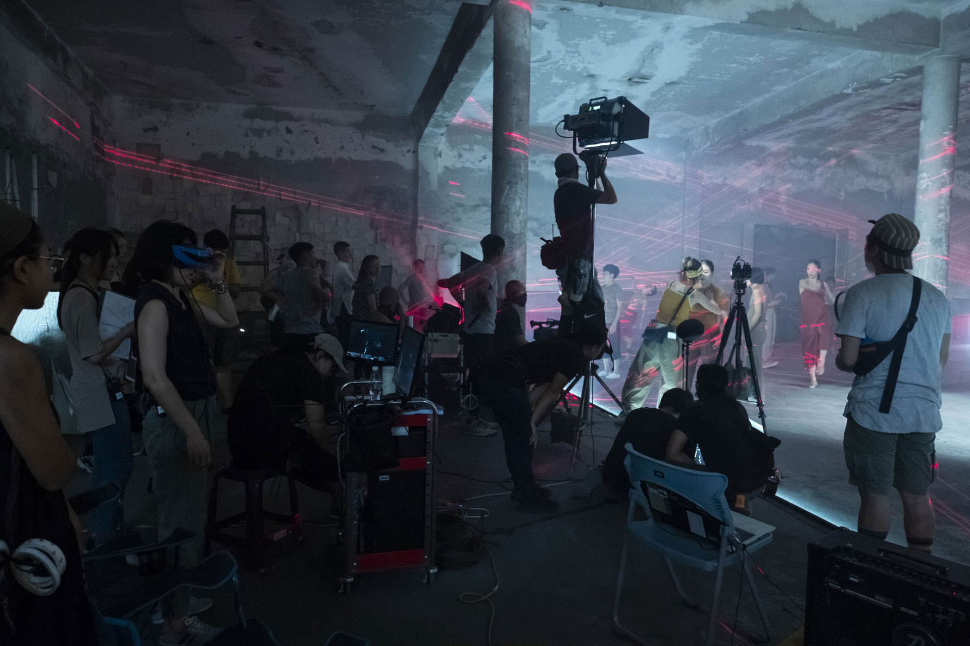 對於影像中合作舞者的挑戰首先是工作方式,拍攝是到前一天才搭景,舞者才得以真實看到現場,和一般劇場可以整排、有較長的時間熟悉環境很不一樣。但陳芯宜也認為舞者到了拍攝現場,又會有一種僅有在現場即時的感受被激發出來。另外因為《留給未來的殘影》是部有劇情的舞蹈電影,而非純粹的舞蹈表演,對舞者的難題是必須去找出舞蹈和日常中銜接的動作。像周書毅坐在床上,確認床的質感、位置的動作,感受環境的確認動作,她覺得這樣介於舞蹈與日常間的動作很完美,「我們都會確認現在要寫實的走,還是舞蹈的走,那介於舞蹈和寫實的日常動作到底是什麼?」《留給未來的殘影》處理的跨界問題是關於VR和舞蹈,陳芯宜也也透過拍攝的過程試圖找到導演、舞團和VR技術團隊三者間的相處方式。