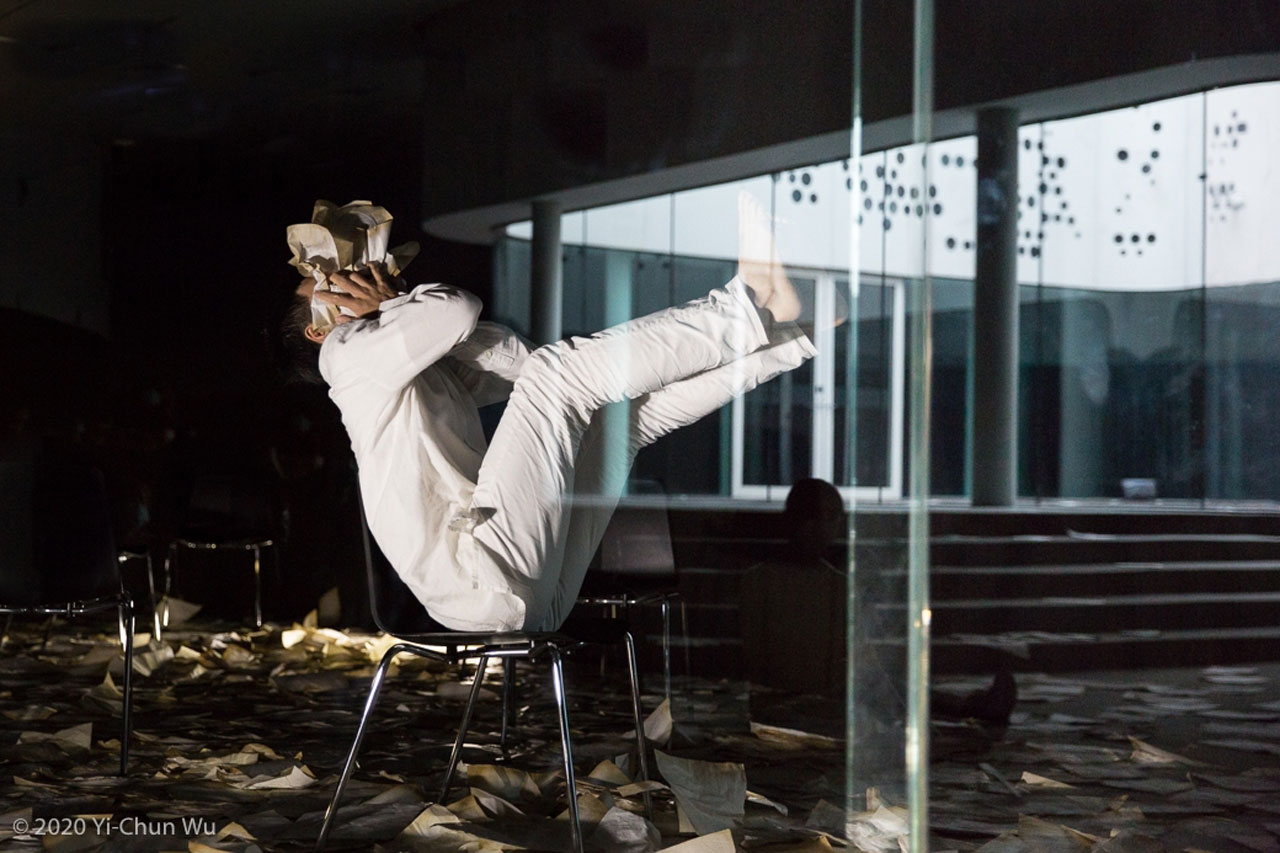 而這次與合作舞者周書毅互動的創作過程,也像是兩人互動相處溝通下的文本創作。過程中她持續將劇本的細節如聊天般講述給周書毅聽,讓文字先成為口述的故事,周書毅從中發展出舞蹈動作,回饋給陳芯宜他的舞蹈想像,「我會再以我的方式解讀他的舞蹈,再細修劇本。」這些編舞的實景,通常就是陳芯宜講述著,而周書毅在旁邊聽,邊拉筋、邊思考舞蹈動作,在這樣來來回回下累積出文本,她認為就是和周書毅有這樣長年的默契,劇本才能以這樣貼近彼此創作思考的方式工作。有一段創作討論階段,周書毅剛好前往香港,兩個人持續以視訊溝通創作細節。陳芯宜提到當時她透過視訊看著周書毅跳舞,有一個剎那他回頭看著銀幕裡的她,「他的眼神是看著銀幕上的我,而不是看著鏡頭,那個視線沒有對焦卻可以投射交流的狀態,對我來說就是VR給我又虛又實間的感受。」