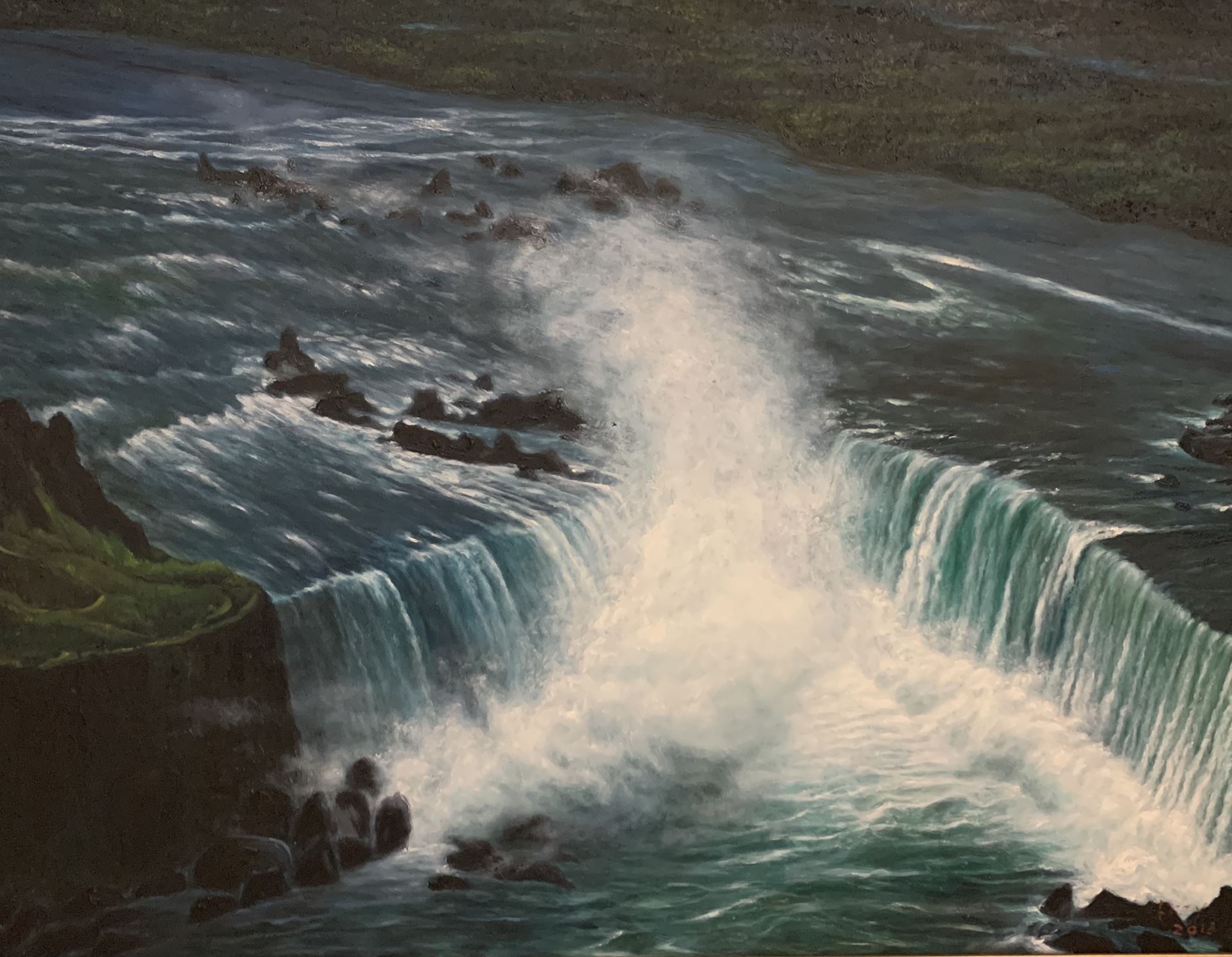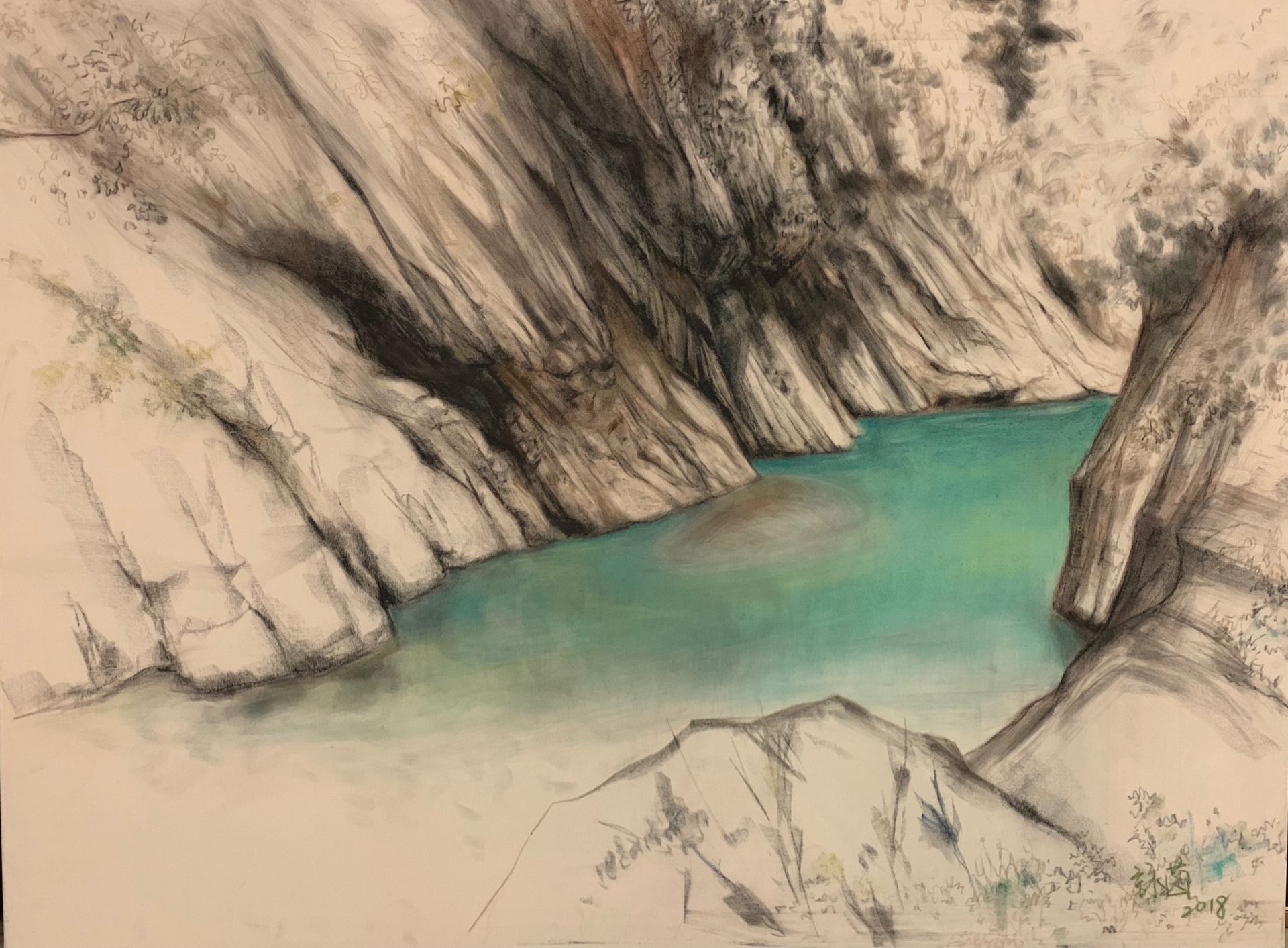 平日裡,羅詠茵雖流返於學習研究與生活的場域之間,卻總會安排時間進行繪畫創作,她形容道:「畫畫是我生活的重要平衡點,也讓我在途中培養自己的美學觀點與品味。」「旅途」系列是羅詠茵用畫筆記錄其遊歷體驗,她常至國外參加醫療學術交流與參訪活動,也對當地景點、文化和歷史做深入研究,同時評估情境與媒材是否符合創作理念,她亦注重作品細節的精緻度,將專業實驗研究者的精神盡情發揮,最後進行創作產出。如《尼加拉瓜瀑布》,氣勢磅礴瀑布的自然景觀活躍於她的畫筆下,她表示自己是以科學的角度及「細胞」的組合概念描繪該景象:「我將創作中的瀑布、水流、遠山等每個環節視為一個個NDA、基因與細胞,它們雖是畫面場景中的個體(單位),但當它們拼湊在一起,就擁有了完整的生命力。」而這一創作方法,是其在過往人生經驗中所獲得的靈感:「無論作為公司經營者,還是學術研究者,這些角色都不斷砥勵著我向前行,我也重視以科學、開放、積極的態度解決面對的狀況。於我而言,藝術創作雖感性,我卻也在這些細膩的感知中以理性地、做研究的方式去處理繪畫所遇到的各種難關。」
