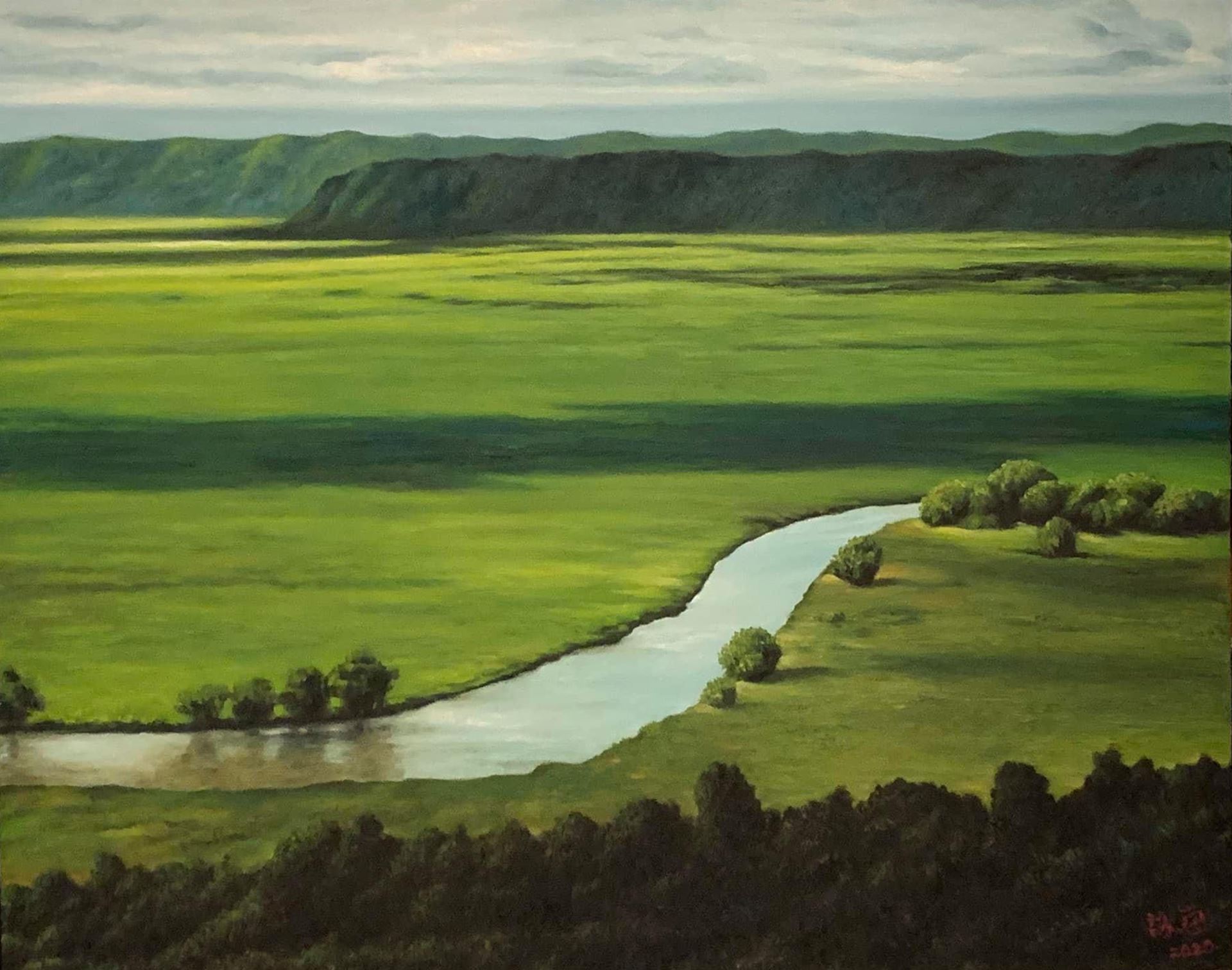 走進輔大醫院,一樓門診大廳右側的一幅名為《蒼翠》的作品吸引著訪客的目光。《蒼翠》是鳥瞰綠色平原向下所繪製,將遼闊的自然景象收進畫布之中。這件作品來自藝術家羅詠茵,她自小就有美術天分,至今藝術創作從未間斷,並曾舉辦及參與多場畫展。在生醫界與企業界,她亦以學術研究學者及女性企業家的雙重身分為人所知。