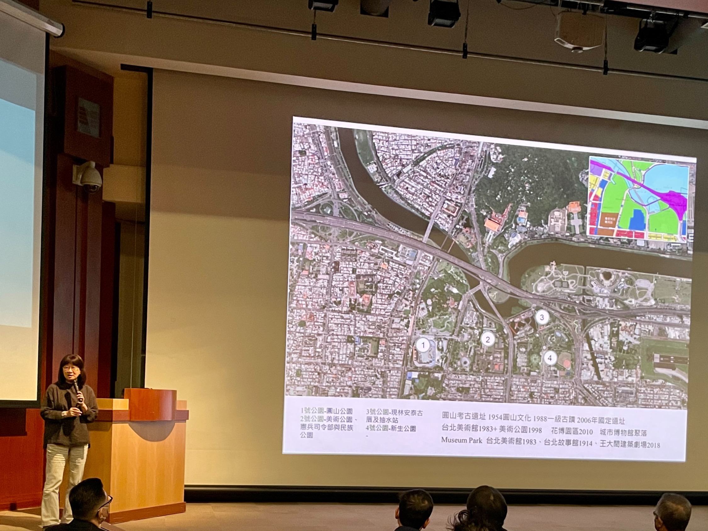 王秀娟搜羅自1904年的城市地景圖,從圓山周邊四塊不同用途的公園預定地,試圖從歷史找出現今這片土地的定位。在1983年北美館開館,奠定台灣美術史、美術教育的前端,也為這片公園預定地訂定關鍵性的地位。2010年的花博園區將四個公園預定地重新整合,再次被居民認識與使用。在這次北美館擴建案,可說是要底定這片公園地未來百年的用途,除了北美館以外,周邊還有1914年的台北故事館、王大閎劇場,以及圓山遺址,是台北的文化重要樞紐,往北將連線至近日將完工的台北表演藝術中心,往南則涵蓋了都市藝文休閒廊帶包含台北光點、台北當代藝術館等。因此北美館擴建案將扮演舉足輕重的文化基地,面對台北如何在國際城市競爭中將展現文化藝術成就與人文特質,王秀娟提出了幾個方向的論點: