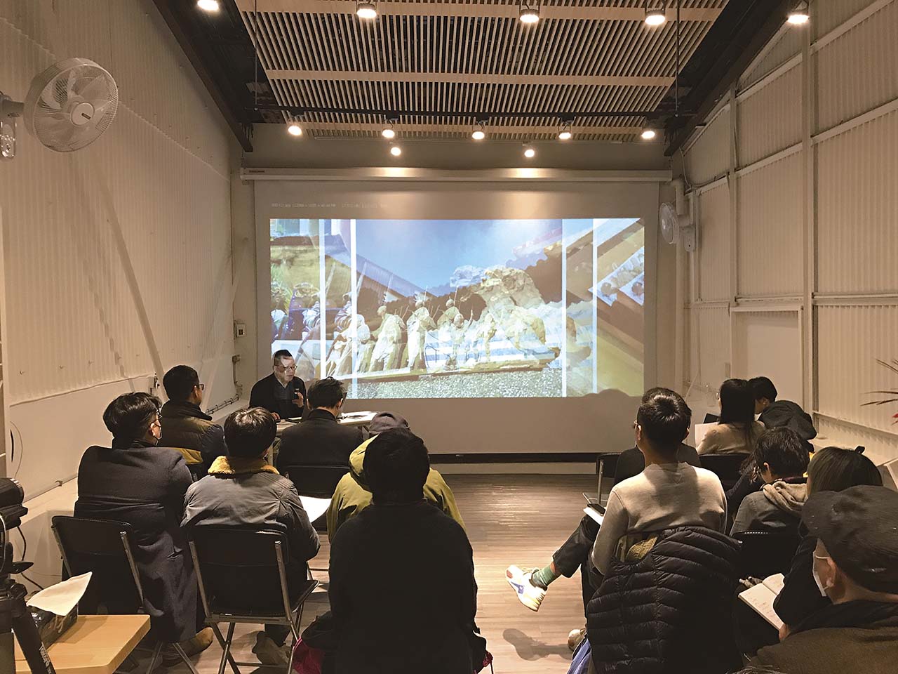 TVAA的研究員黃韶安,則介紹「臺灣藝術檔案田野工作站」的發展與工作項目,指出該工作站關注民間的現當代藝術作品及檔案(如書信、日記、口述記錄等),以徵集、調查文獻檔案,並與作品串聯進行獨立研究。她同時以「異化與新生」為主題,介紹自身所進行的研究,以二戰後作為非中心藝文場域的京都作為觀察對象,提出在遠離中心(東京)而滯後的藝術市場發展及競爭意識之下,所能產生的另類路徑,如戰後以京都大學為首的社會運動、1980年代的京都藝術大學與關西New Wave、1990年代的行為藝術及夜店文化等。