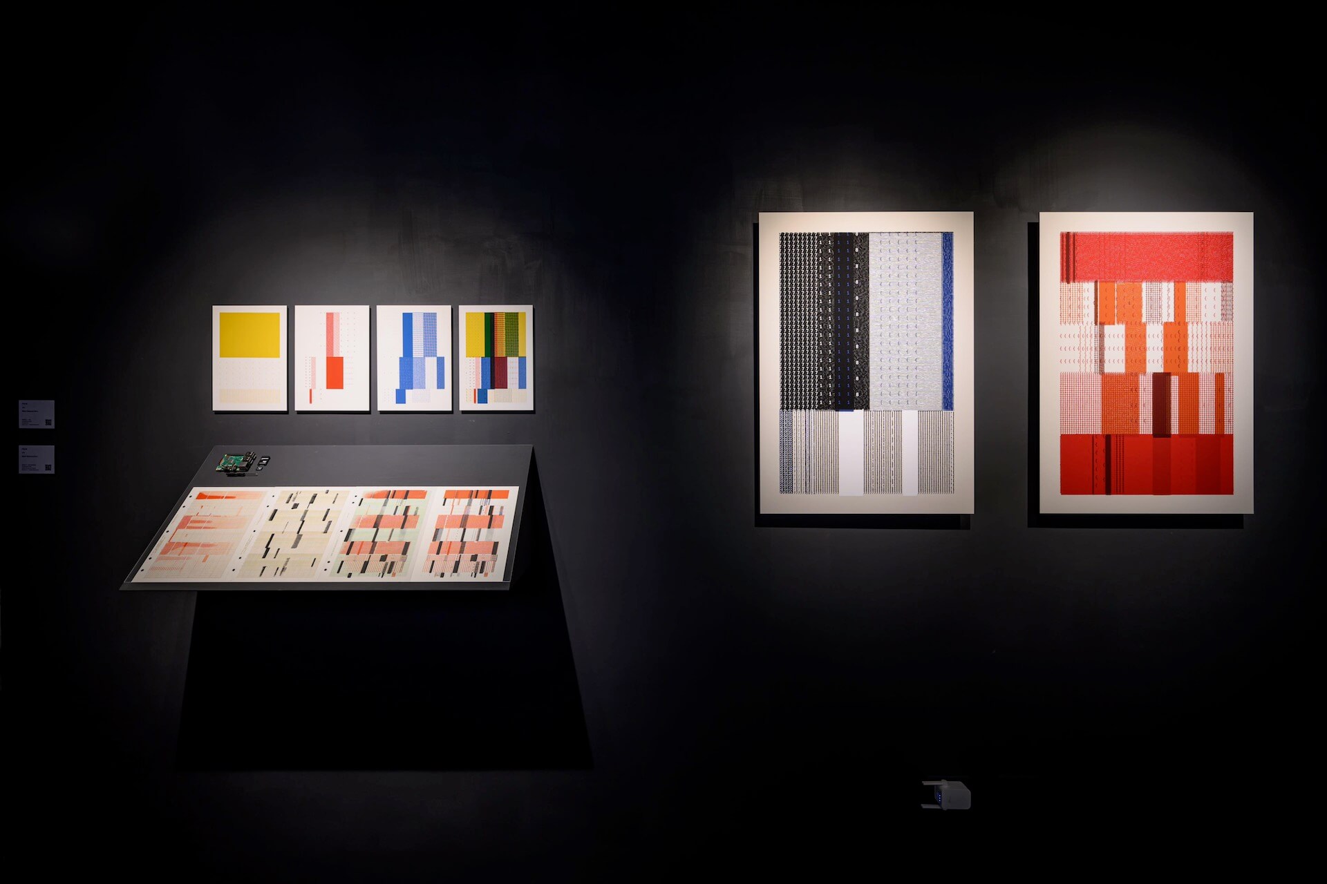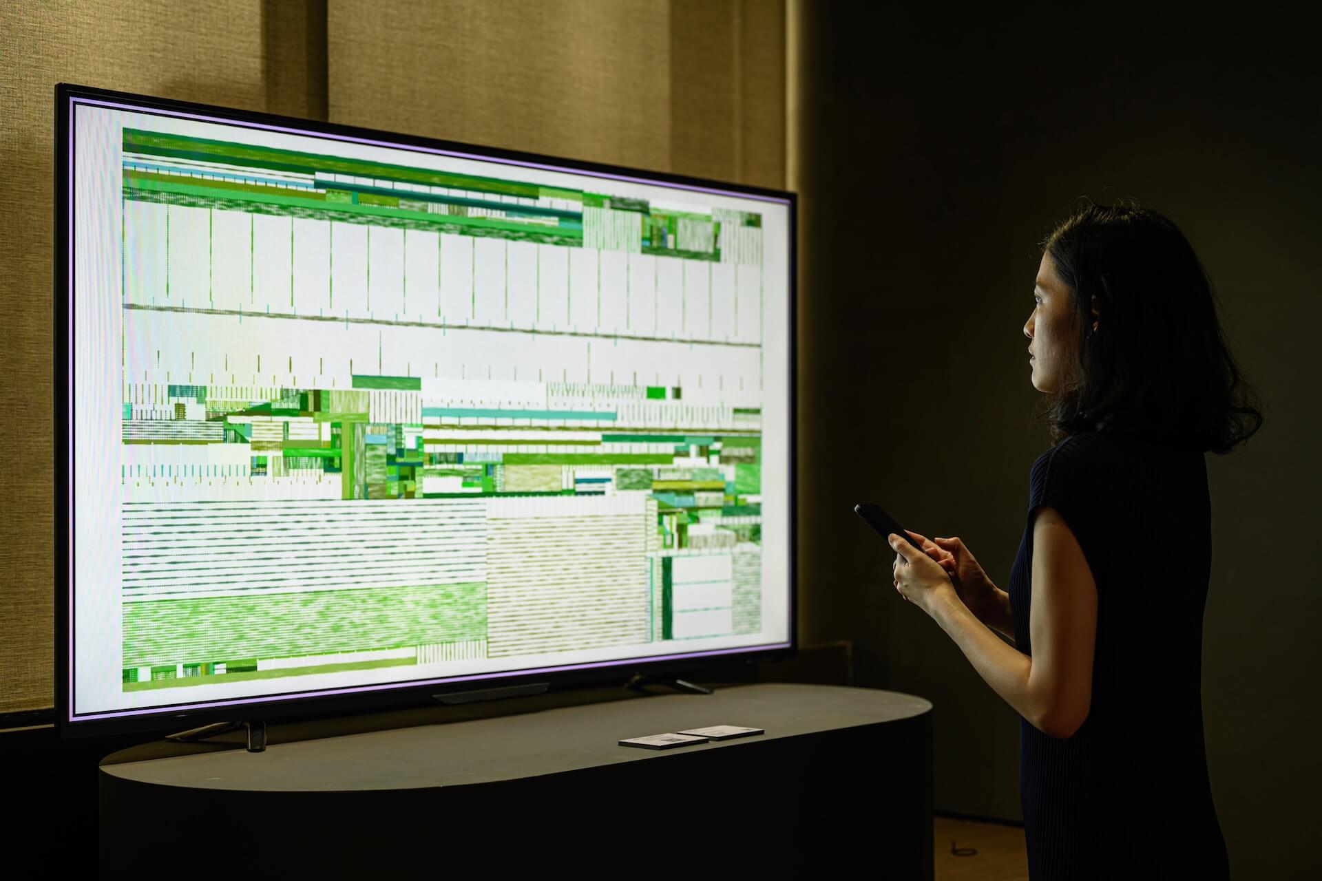 3.現地鑄造(Live Mint)等互動方式設置,一直式加密藝術線下展呈將常出現的配置。這次包括旅英藝術家林逸文(Yi-Wen Lin)以費波那契數列融入的作品《Sequencing》,呈現數學和藝術的交匯。以及akaSwap藝術總監王新仁所推出的藝術實驗計畫《Chaos & AI Research》,將觀眾上傳的作品以人工智能生成出具有王新仁作品筆觸的共創作品。黃新的《遞迴與方塊》邀請觀者透析以區塊分割演算法下,如果調整參數在背景、色調、分割方式等參數,作品會有哪些差異,藉此更理解生成藝術的視覺構成。