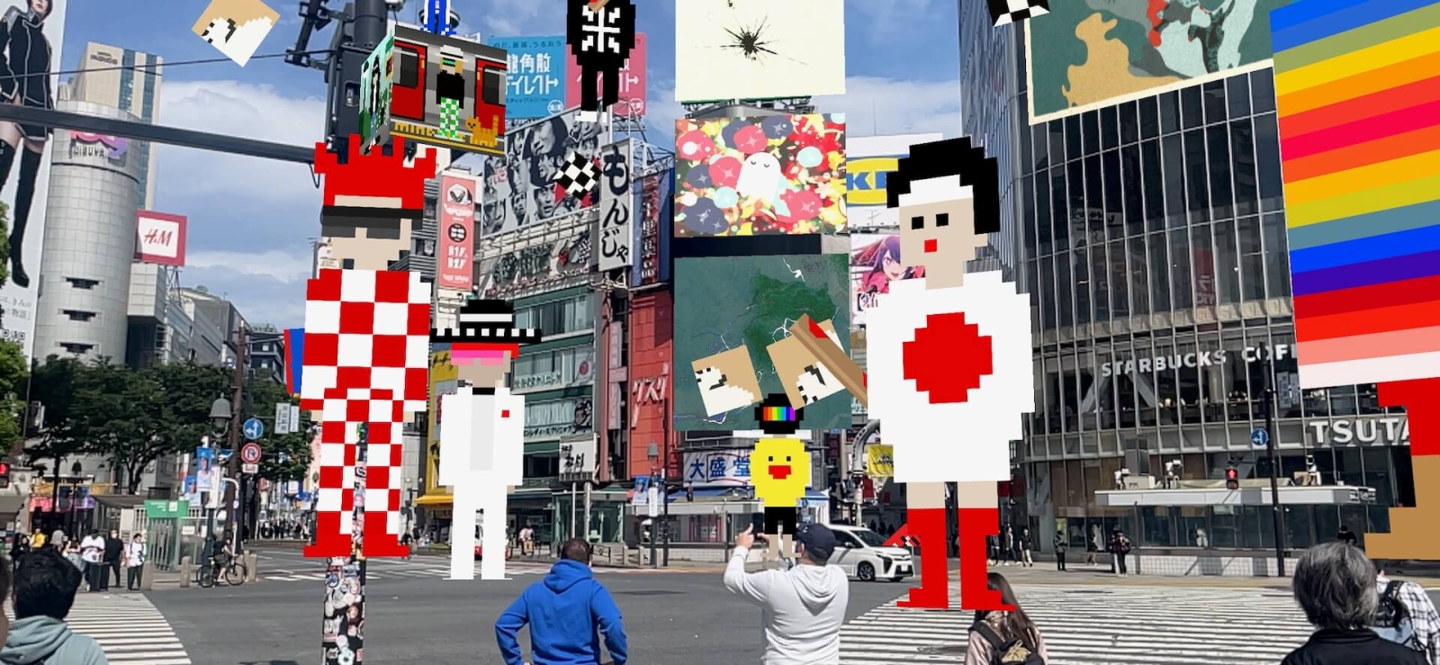 除了A-Mashiro以外,另一位日本藝術家Takawo也和Metadimensions合作,運用AR的方式結合東京街景、BM的像素主視覺並邀請了眾多藝術家作品,像是台灣藝術家王新仁、紐約藝術家Emily Xie的作品都會被擺上澀谷最著名的十字人行路口——Scramble Crossing(渋谷スクランブル交差点,即出現在影集《今際之國》中的十字路口)展示。