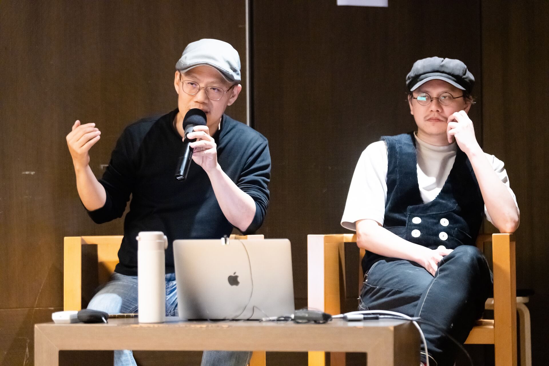 鄭文琦(左)藝文工作者,綽號雨蛙。2017年發起「群島資料庫」計畫迄今,致力於梳理台灣與東南亞地區的共享歷史及其解殖作用;羅仕東(右)現任「打開-當代藝術工作站」站長,資深Tezos收藏家。致力探索跨文化對話與集體協作的實踐,近年亦投入於探索當代藝術與加密藝術之間的可能性。(c2x3提供)