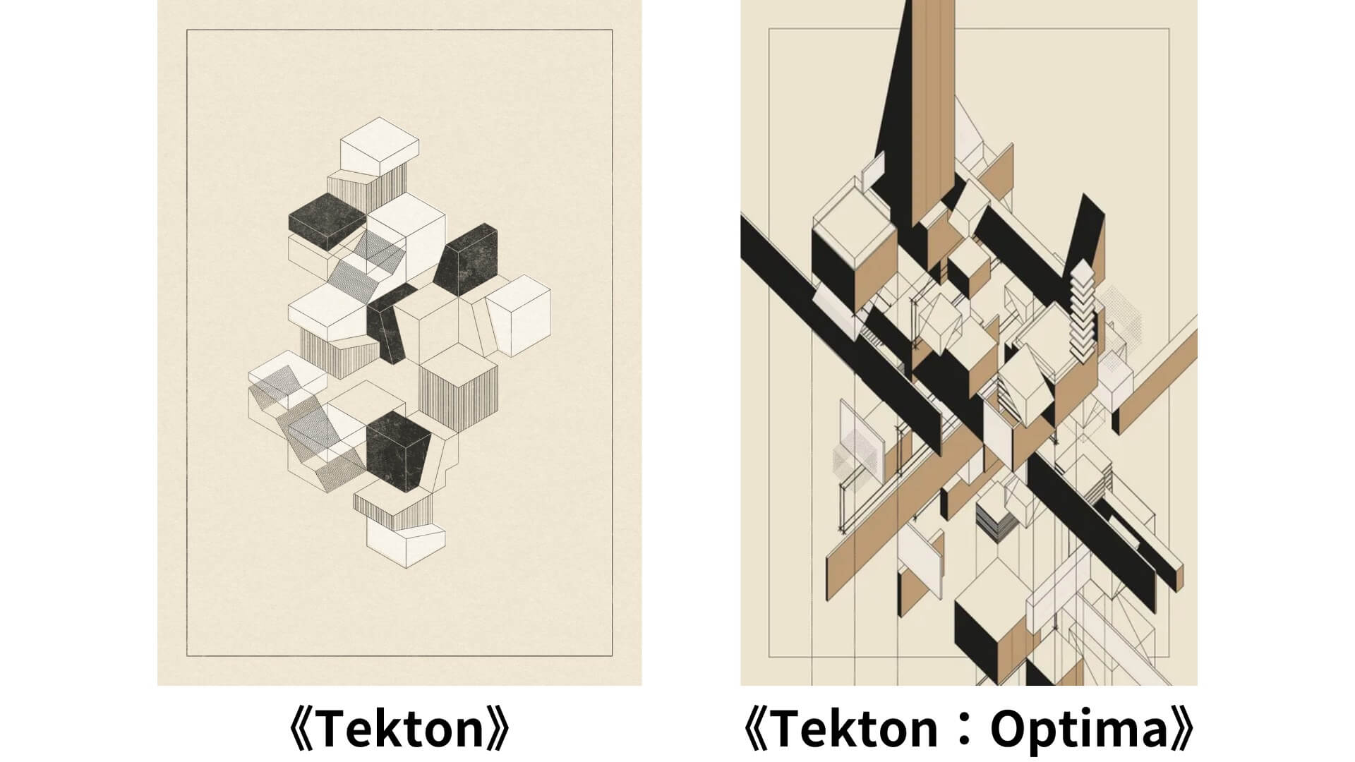 Bruce分享道《Tekton》其實有點像《Tesseract》的衍生,它使用了自己玩積木玩具時所創建的模組(等軸立體形式)。《Tekton》原為手創作品,隨著Bruce程式編寫技術提升,它最終以純生成藝術的形式被重製為《Tekton: Optima》。對藝術家來說,這便是此項目最大的特點之一。
