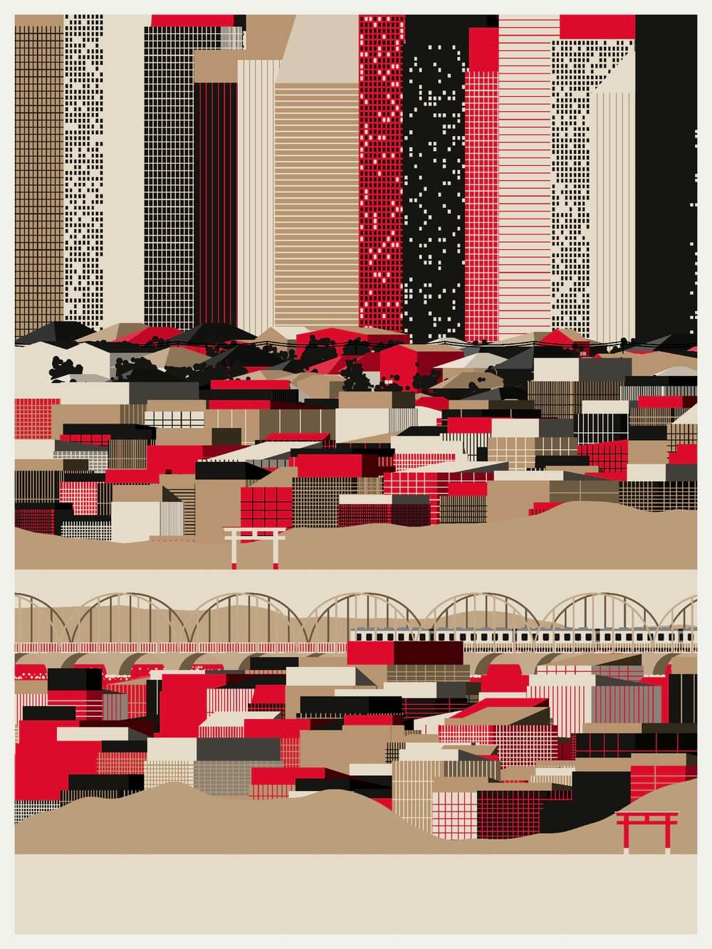 透過上述的作品,我們能觀察到Bruce作品中有著和諧的配色與構圖。他擅長將居住環境的色調,及對日式風格的喜好融入創作之中。包括沙漠的大地色,天空、日落鮮豔、變幻無常 的色彩。